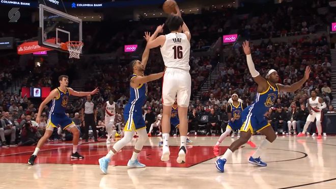 9分6板1帽!杨瀚森又创1新高!开拓者遭18分大逆转,库里轰28分